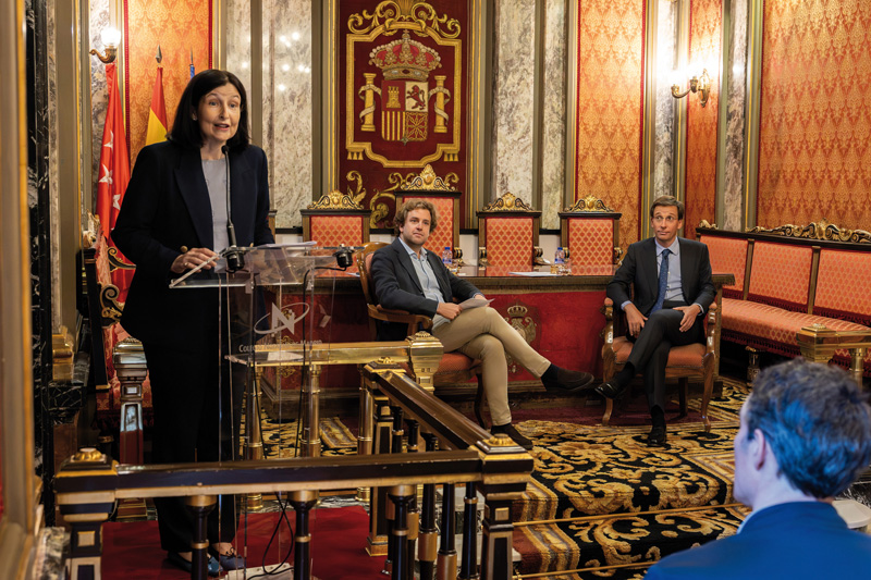 Ambos reflexionaron sobre las perspectivas de desarrollo de la ciudad, su posición internacional y su rol como puerta de entrada de Latinoamérica, papel que impulsa a Madrid a situarse al nivel de grandes urbes como Miami. La decana del colegio notarial madrileño y presidenta del Consejo General del Notariado, Concepción Pilar Barrio Del Olmo, dio la bienvenida a los asistentes a la sesión, que contó con la presencia de miembros de la junta directiva del colegio y representantes institucionales, como la exalcaldesa Manuela Carmena.