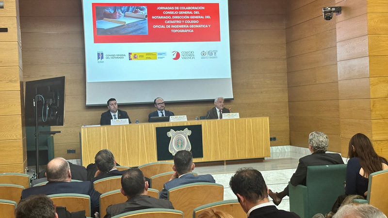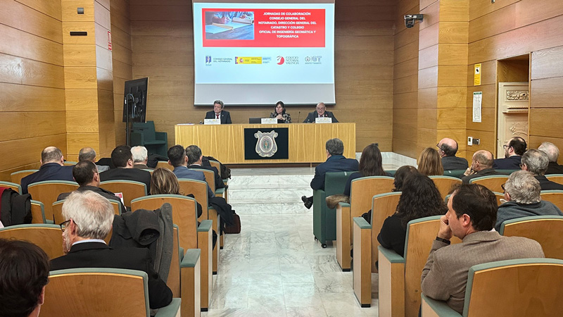 El Colegio Notarial de Valencia acogió el 27 de enero una jornada impulsada por el Consejo General del Notariado (CGN), la Dirección General del Catastro del Ministerio de Hacienda y el Colegio Nacional de Ingeniería Geomática y Topográfica (COIGT) sobre la realidad documental y la cartografía catastral.