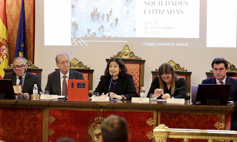 En su intervención, Barrio Del Olmo valoró el simposio como “una oportunidad muy interesante para avanzar en una cultura empresarial más transparente, con un mayor compromiso ético y de sostenibilidad, y ver las consecuencias jurídicas de todo ello”. La presidenta del CGN subrayó que el Notariado es un actor esencial para la consecución de muchos de los objetivos del Código de Buen Gobierno: “La intervención notarial garantiza la seguridad jurídica, la autenticidad de los documentos y la protección de los accionistas, y contribuye a fortalecer la confianza de los mercados. Todo ello con un objetivo común: conseguir mayor transparencia, valores éticos y sostenibilidad en la gobernanza», apuntó.