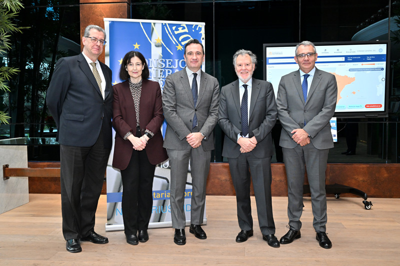 En el encuentro también participaron Manuel Tarrío, secretario del CGN; Alberto Martínez Lacambra, director general del Centro Tecnológico del Notariado; y Esteban Arimany, abogado del Estado y secretario de las Comisiones del Centro Tecnológico.