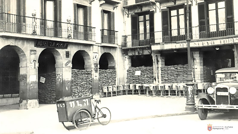 Bar Choko y fachada de lo que fue el Hotel Quintana a mediados del s. XX (archivo del Ayuntamiento de Pamplona).