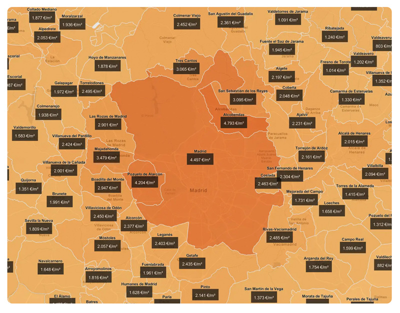 El portal está diseñado para facilitar la consulta y el análisis del mercado inmobiliario. Cuenta con un mapa de fácil navegación y muy visual para explorar y obtener los principales indicadores sobre la vivienda. Tras determinar un área de interés, permite filtrar por tipo de finca y construcción, y consultar el precio medio por m², la superficie media, el importe medio total y el número de compraventas realizadas en la zona seleccionada. Los datos ofrecidos se actualizan cada mes y ofrecen una visión de los últimos doce meses de actividad en el mercado.