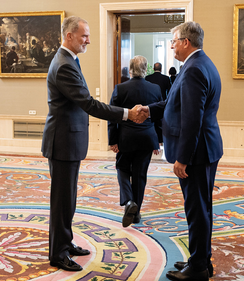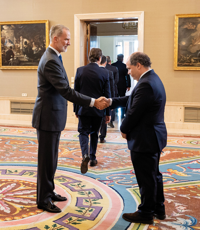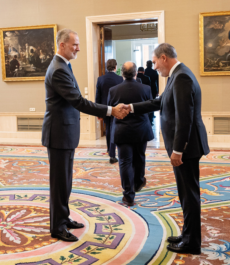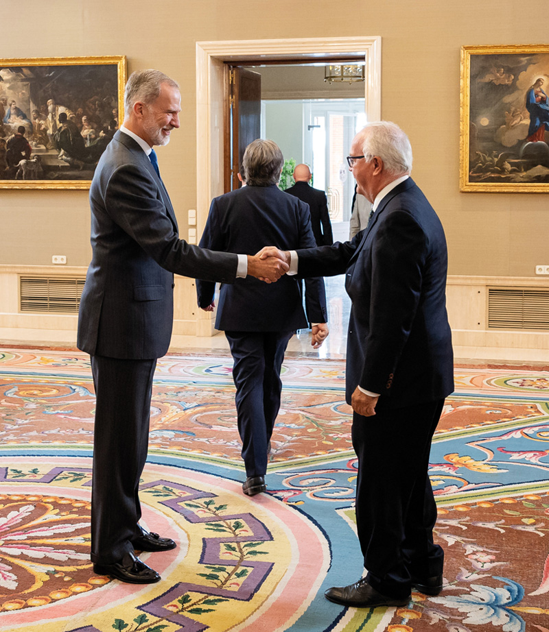 A la recepción ofrecida por Su Majestad el Rey para recibir el ‘Premio Fides a los Grandes Valores’ del Notariado, asistieron los decanos de los colegios notariales que integran el Pleno del Consejo General del Notariado, así como los secretarios y vicesecretarios de esta corporación y el director general de la Fundación Notariado.